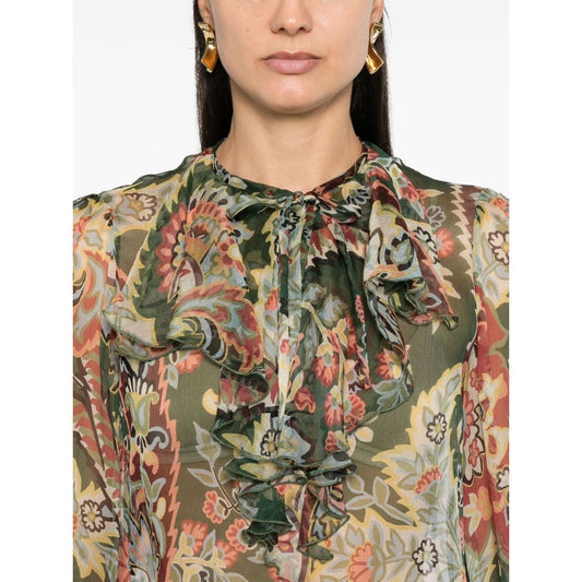 Etro Beige Printed Collared Buttoned Long Sleeves Blouse Top