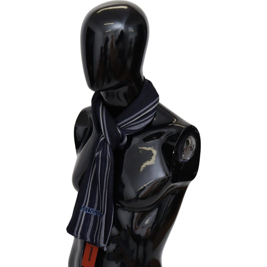 وشاح ميسوني الأنيق المصنوع من الصوف باللون الأزرق مع شعار مطرز