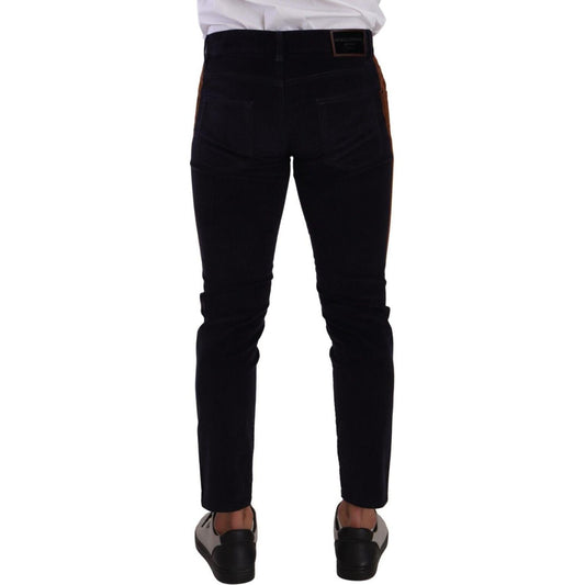 بنطلون دولتشي آند غابانا الفاخر من قماش مخملي ضيق باللون الأزرق الداكن