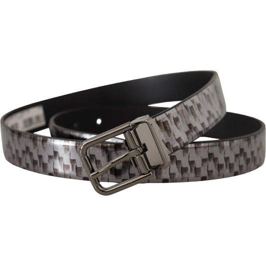 حزام جلدي إيطالي أنيق من دولتشي آند غابانا باللون الرمادي الأنيق