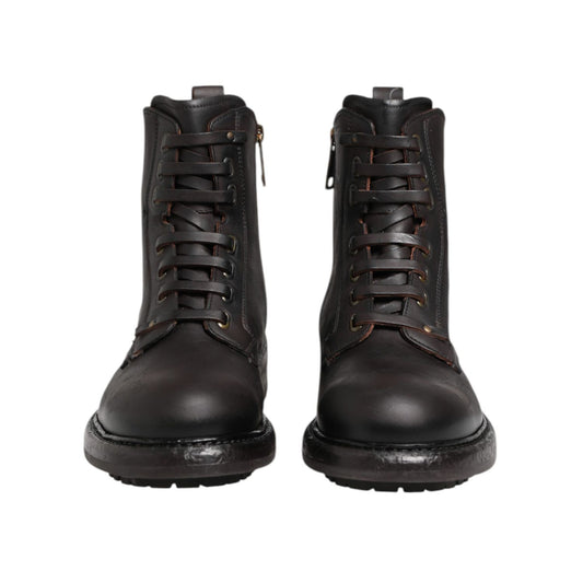 Dolce & Gabbana Brown Black Leather Boots Zipper Lace Up Shoes