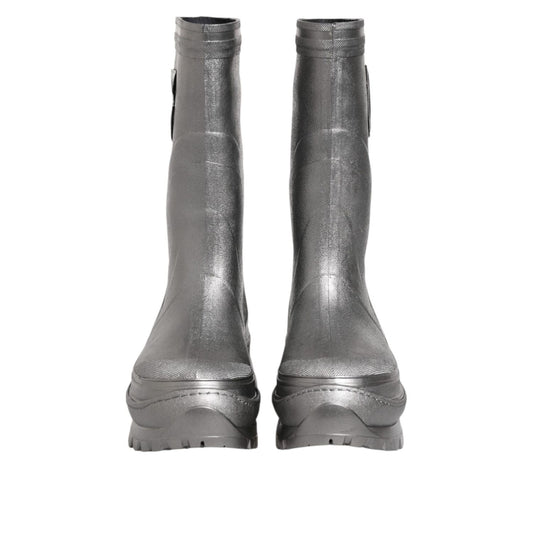 Dolce & Gabbana Metallic Gray Pull On Rain Boots Shoes