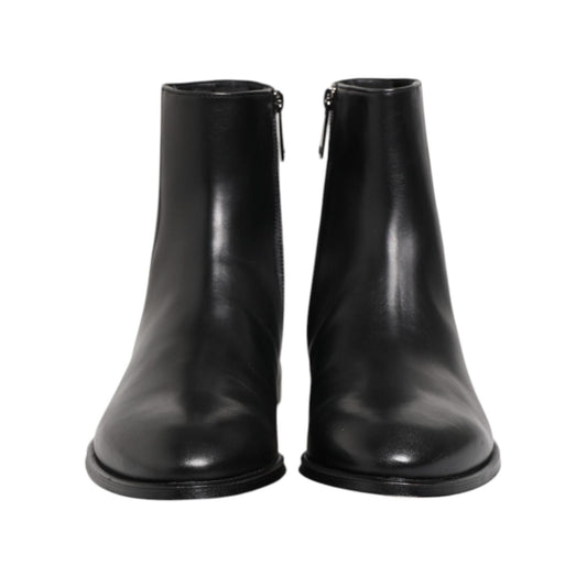 Dolce & Gabbana Black Leather Mid Calf Men Boots Shoes