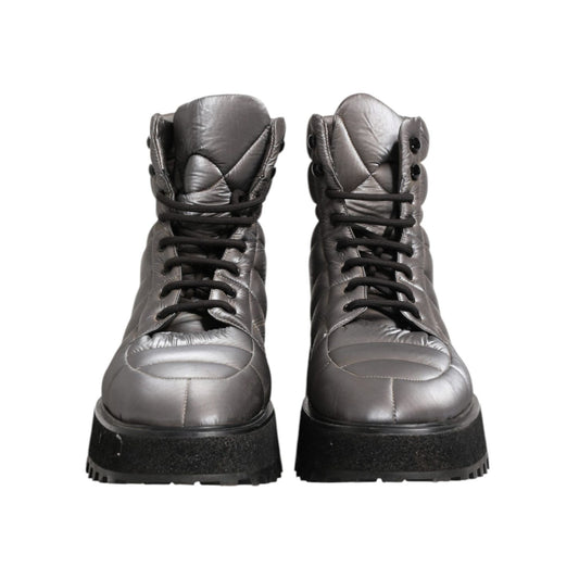 Dolce & Gabbana Silver Padded Mid Calf Lace Up Boots Shoes
