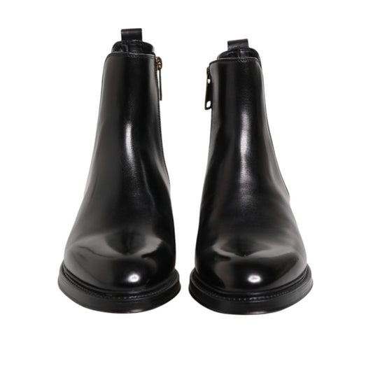 Dolce & Gabbana Black Chelsea Leather Mid Calf Boots Shoes