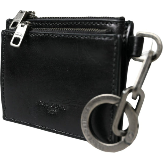 سلسلة مفاتيح بسحاب وشعار من الجلد الأسود من دولتشي آند غابانا، محفظة عملات معدنية، سلسلة مفاتيح