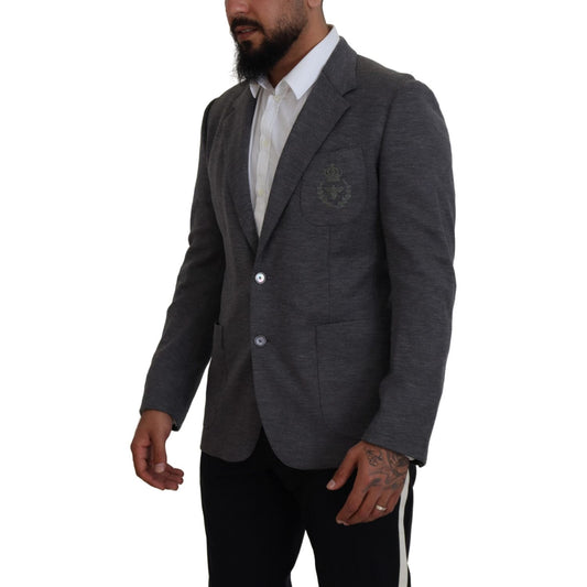 سترة صوفية رمادية أنيقة من دولتشي آند غابانا مع تطريز على شكل تاج النحل