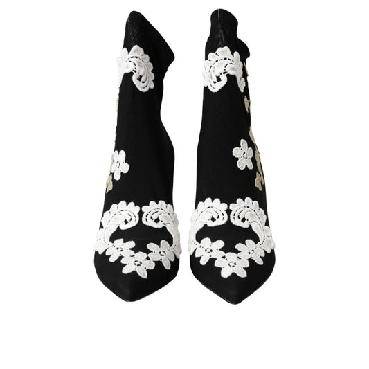Dolce & Gabbana Black White Embroidery Slip On Boots Shoes