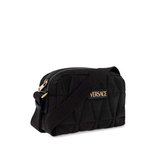 Versace Black Grainy Calf Leather Logo Crossbody Shoulder Bag