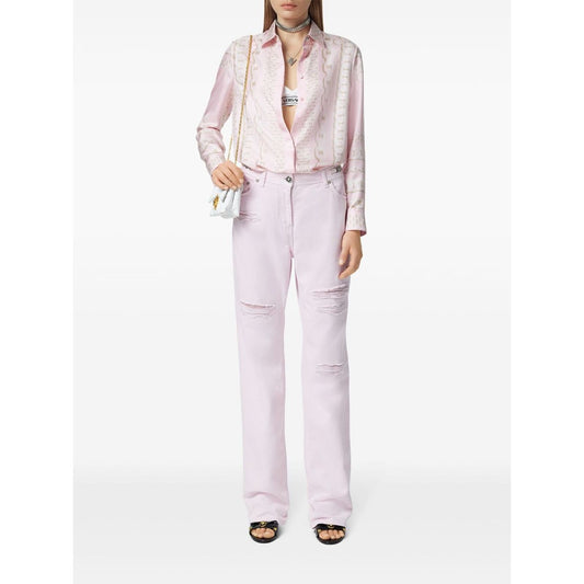 Versace Pink Grainy Calf Leather Logo Crossbody Shoulder Bag