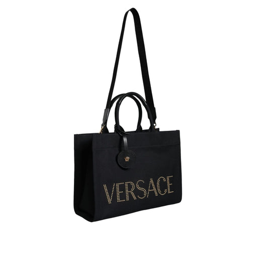 حقيبة فيرساتشي سوداء من الجلد المبطن مع حزام كتف