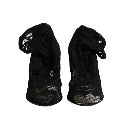 Dolce & Gabbana Black Stretch Pumps Boots Floral Lace Shoes