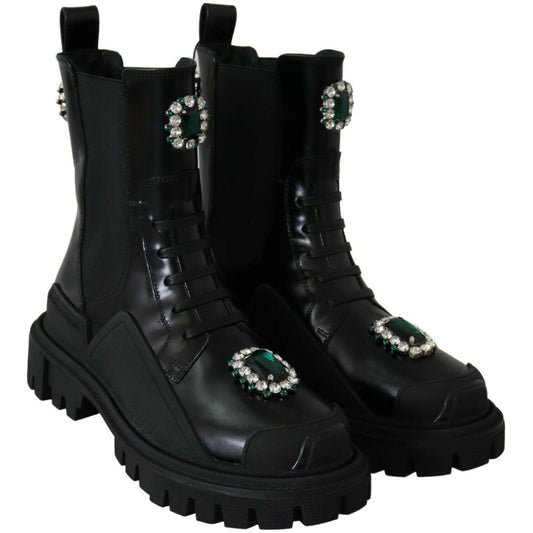 حذاء عسكري أنيق من الجلد الأسود من دولتشي آند غابانا مع تفاصيل كريستالية