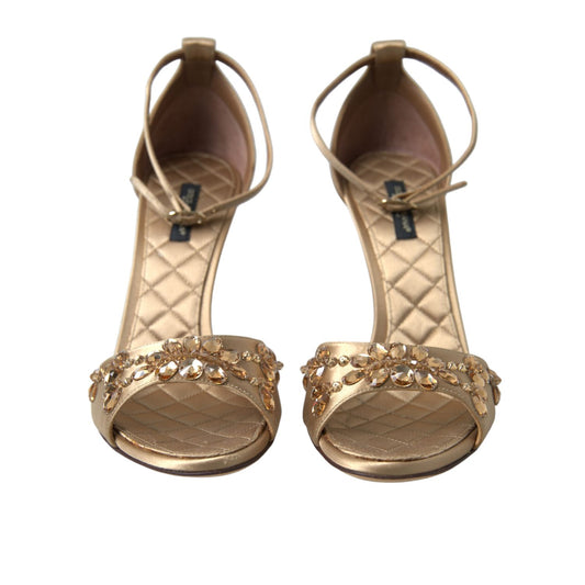Dolce & Gabbana Gold Satin Ankle Strap Crystal Sandals Shoes