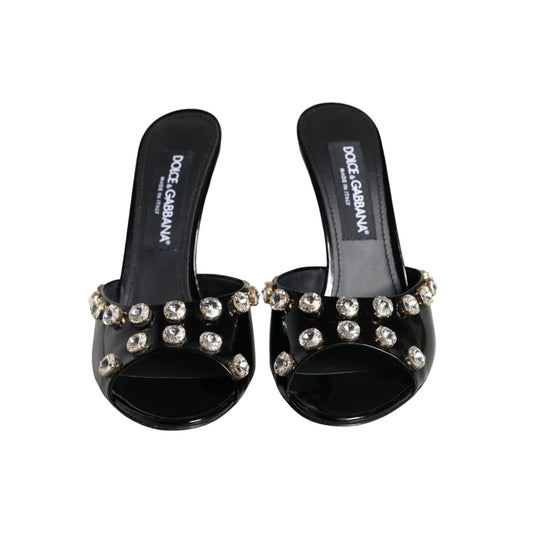 Dolce & Gabbana Black Crystal Heels Keira Sandals Shoes