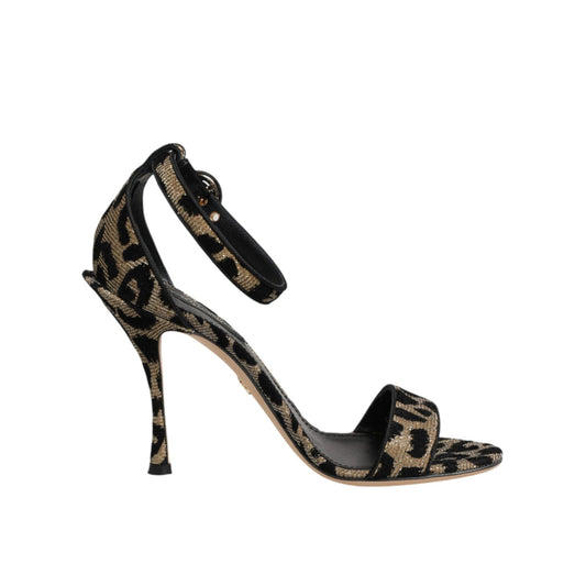 Dolce & Gabbana Gold Leopard Ankle Strap Heels Sandals Shoes