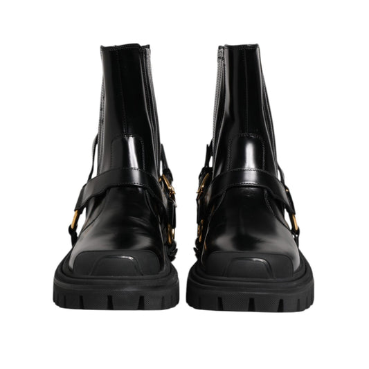 Dolce & Gabbana Black Gold DG Logo Trekking Calf Boots Shoes