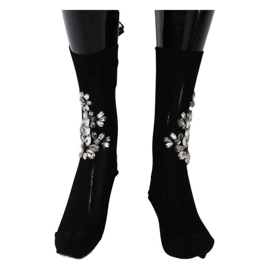 جوارب سوداء بطول منتصف الساق مزينة بالكريستال من دولتشي آند غابانا