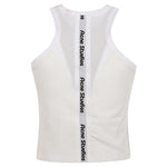White tank top, with logo, wrapping cut, stretch fabric. Logo tank top Size and Fit - This piece fits true to size. We recommend you get your regular size. Model is 1,84m / 6ft 1in wearing size M