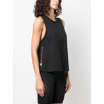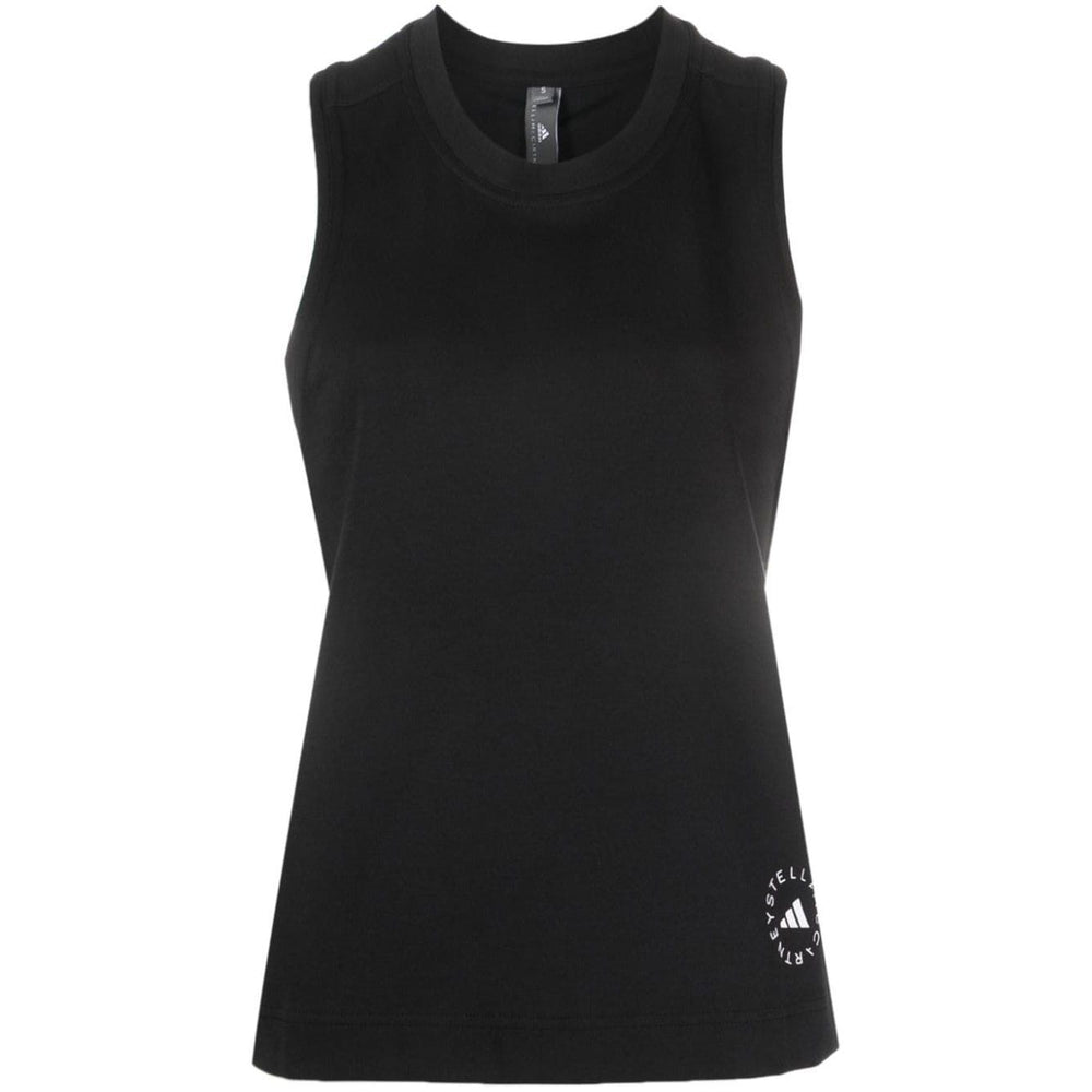 logo-print tank top from adidas by Stella McCartney featuring black/white, logo print to the front, logo print to the side, organic cotton-recycled polyester blend, crew neck, sleeveless and straight hem. Logo sporty tank top Size and Fit - This piece fits true to size. We recommend you get your regular size. Model is 1,75m / 5ft 8in wearing size S