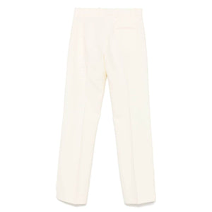 white virgin wool blend interlock twill weave flared leg concealed front button, hook and zip fastening belt loops two side slash pockets pressed crease rear jetted pocket Wool flared trousers Size and Fit - This piece fits true to size. We recommend you get your regular size. Model is 1,75m / 5ft 8in wearing size 40 (IT)