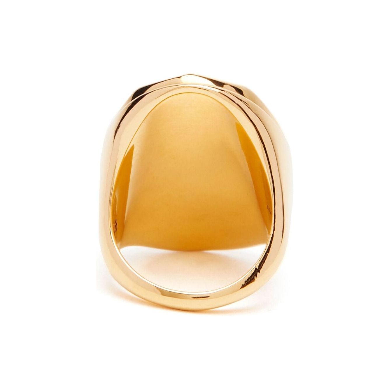 The Faceted Stone ring from Alexander McQueen featuring gold-tone, brass, antique-effect hardware, engraved logo, cut-out detailing and slip-on style. Stone logo ring