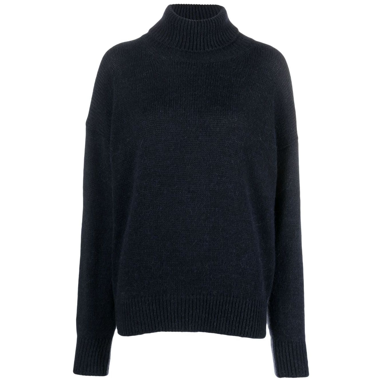 two-tone roll-neck jumper from ALYSI featuring midnight blue, powder blue, knitted construction, two-tone design, roll neck, long sleeves and ribbed cuffs and hem. Mohair wool turtleneck sweater Size and Fit - This piece fits true to size. We recommend you get your regular size. Model is 1,75m / 5ft 8in wearing size S