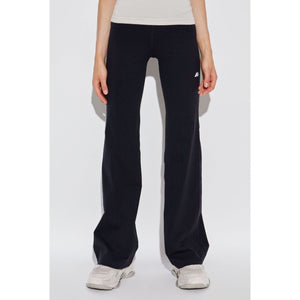 black stretch-design logo print to the side elasticated waistband flared hem long length Track pants
