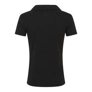 Black polo shirt, half sleeves, patch pocket on the chest, straight hem. Cotton polo shirt Size and Fit - This piece fits true to size. We recommend you get your regular size. Model is 1,75m / 5ft 8in wearing size 40 (IT)
