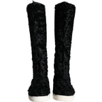 رائع، جديد تمامًا مع علامات 100% أصلية من Dolce & Gabbana حذاء رياضي مسطح من الجلد الأسود من الفرو Xiangao.