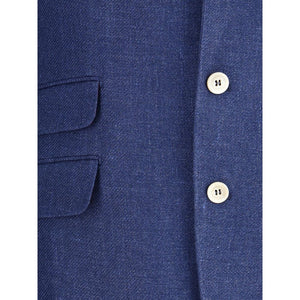 The linen Blazer Jacket by Brunello Cucinelli is an elegant and sophisticated piece, perfect for a refined yet light look. The front button fastening and the classic lapels give it a formal yet modern look. The three welt pockets with flap on the front and the welt pocket add a practical and distinctive touch, keeping the design clean and tidy. Two slits on the back complete the piece, ensuring comfort and freedom of movement. The mélange pattern, with its light combination of colours, gives a nuanced and sophisticated effect, while the regular fit ensures a comfortable and versatile fit, perfect for different occasions.