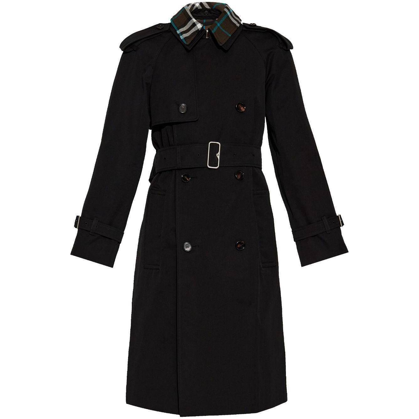 black cotton wide notch lapels detachable collar double-breasted button fastening epaulettes long sleeves buttoned cuffs belted waist two side welt pockets central rear vent straight hem Vintage Check-pattern lining We've partnered with Good On You — an independent agency that rates how brands perform in relation to their impact on the planet, people and animals, with a multi-criteria rating simplified to a five points scale. In order to be awarded our conscious label, larger brands need to score a minimum of four out of five ('Good'), while smaller brands must score at least three out of five ('It's A Start'). This item comes from a brand rated three out of five ('It's A Start') by Good on You at the time it was added on FARFETCH. Please note, this is a brand-level rating and does not guarantee that this product is made with conscious materials. Learn more about what makes a product Conscious on our Conscious Criteria page Cotton trench coat Size and Fit - This piece fits true to size. We recommend you get your regular size. Model is 1,75m / 5ft 8in wearing size 8 (UK)