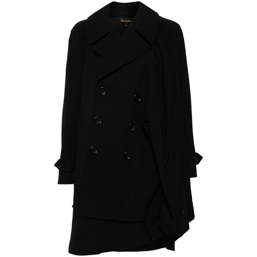 black wool double-breasted button fastening side slash pocket asymmetric sleeves Ulster lapels asymmetric hem Wool double-breasted coat