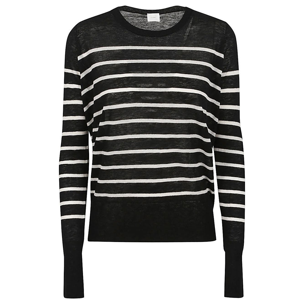Crew neck sweater, long sleeves, ribbed hems, striped pattern and straight cut. Wool striped sweater Size and Fit - This piece fits true to size. We recommend you get your regular size. Model is 1,75m / 5ft 8in wearing size 36 (FR)