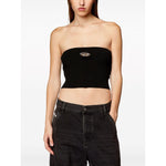 black ribbed knit silver-tone logo plaque strapless straight hem cropped M-Clarksvillex top Size and Fit - This piece fits true to size. We recommend you get your regular size. Model is 1,75m / 5ft 8in wearing size S