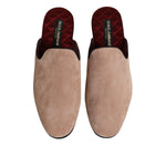 Dolce & Gabbana Beige Capra Suede Slides Flat Slipper Shoes