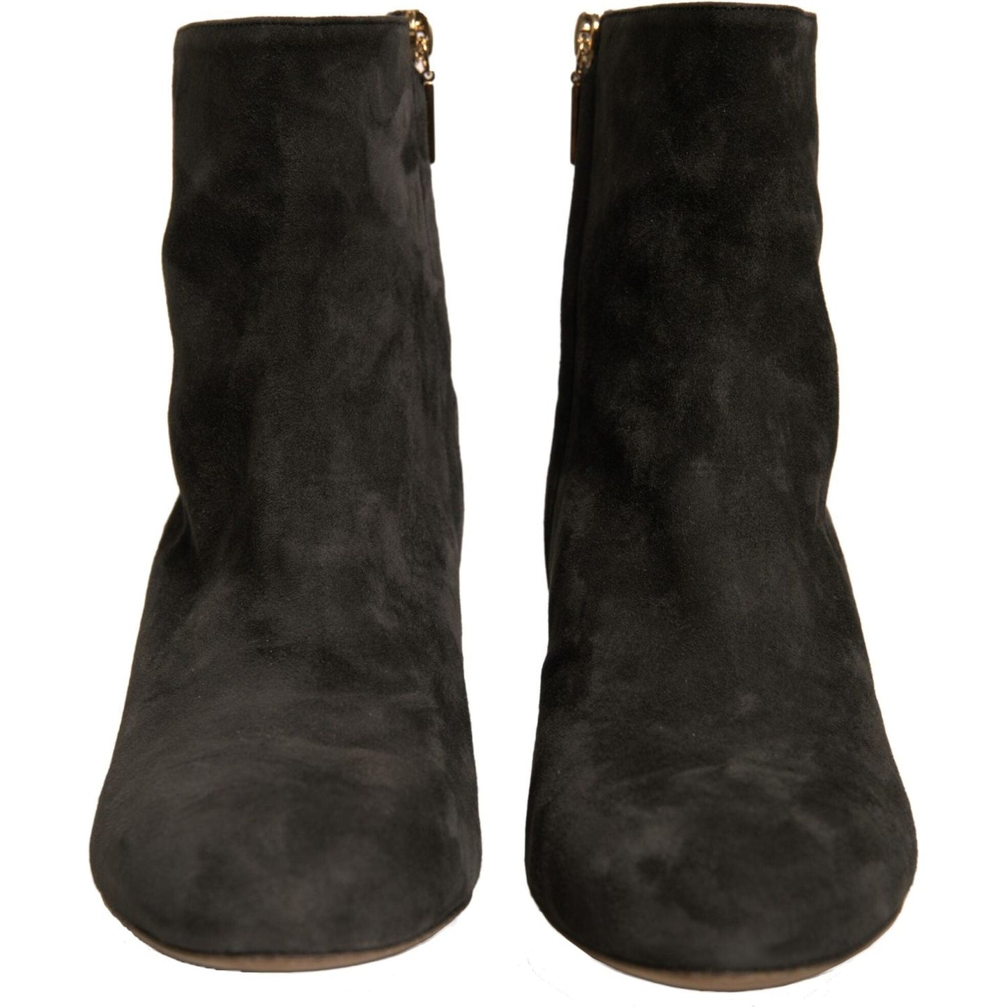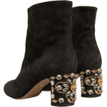 Dolce & Gabbana Black Embellished Heel Ankle Boots Shoes