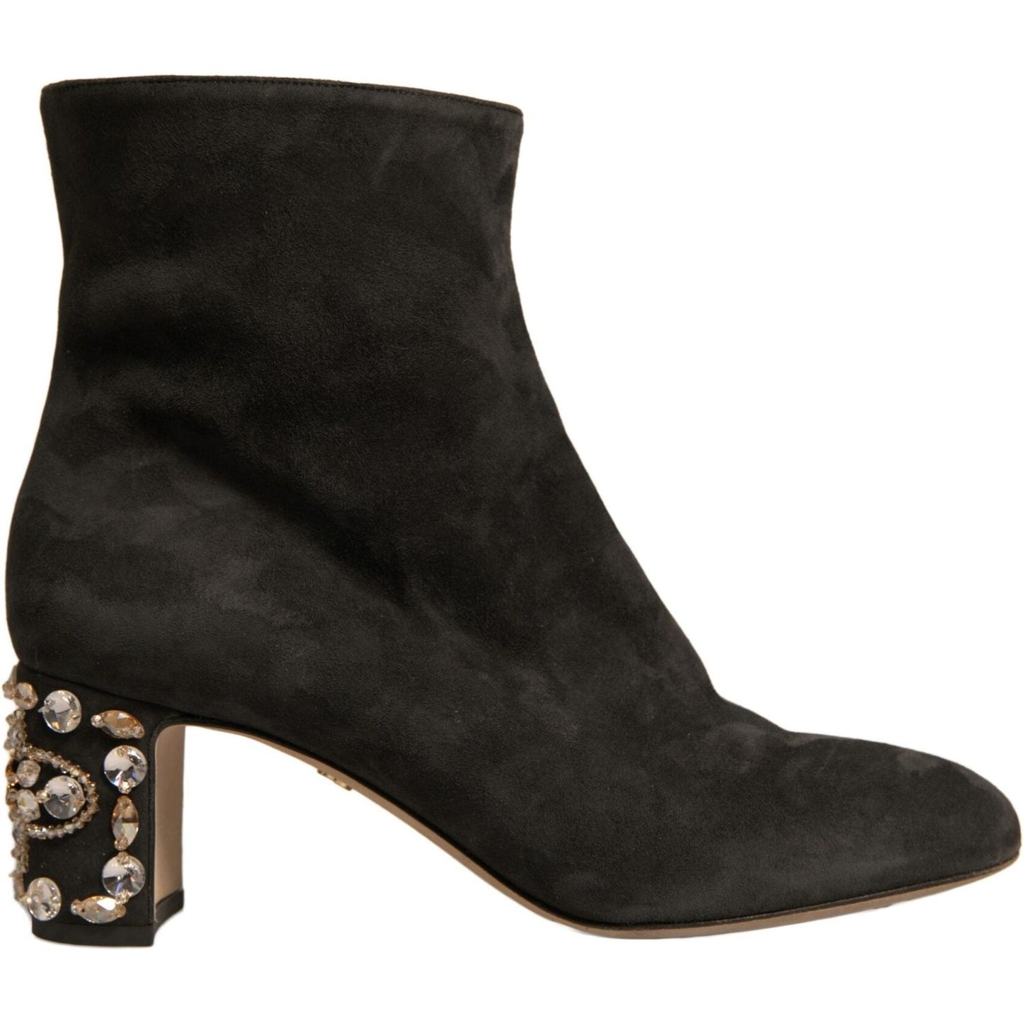 • Dolce & Gabbana Black Embellished Heel Ankle Boots Shoes