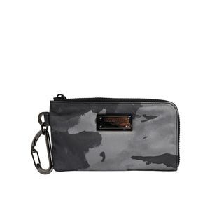 Dolce & Gabbana Black Gray Camouflage Logo Plaque Keyring Pouch Bag