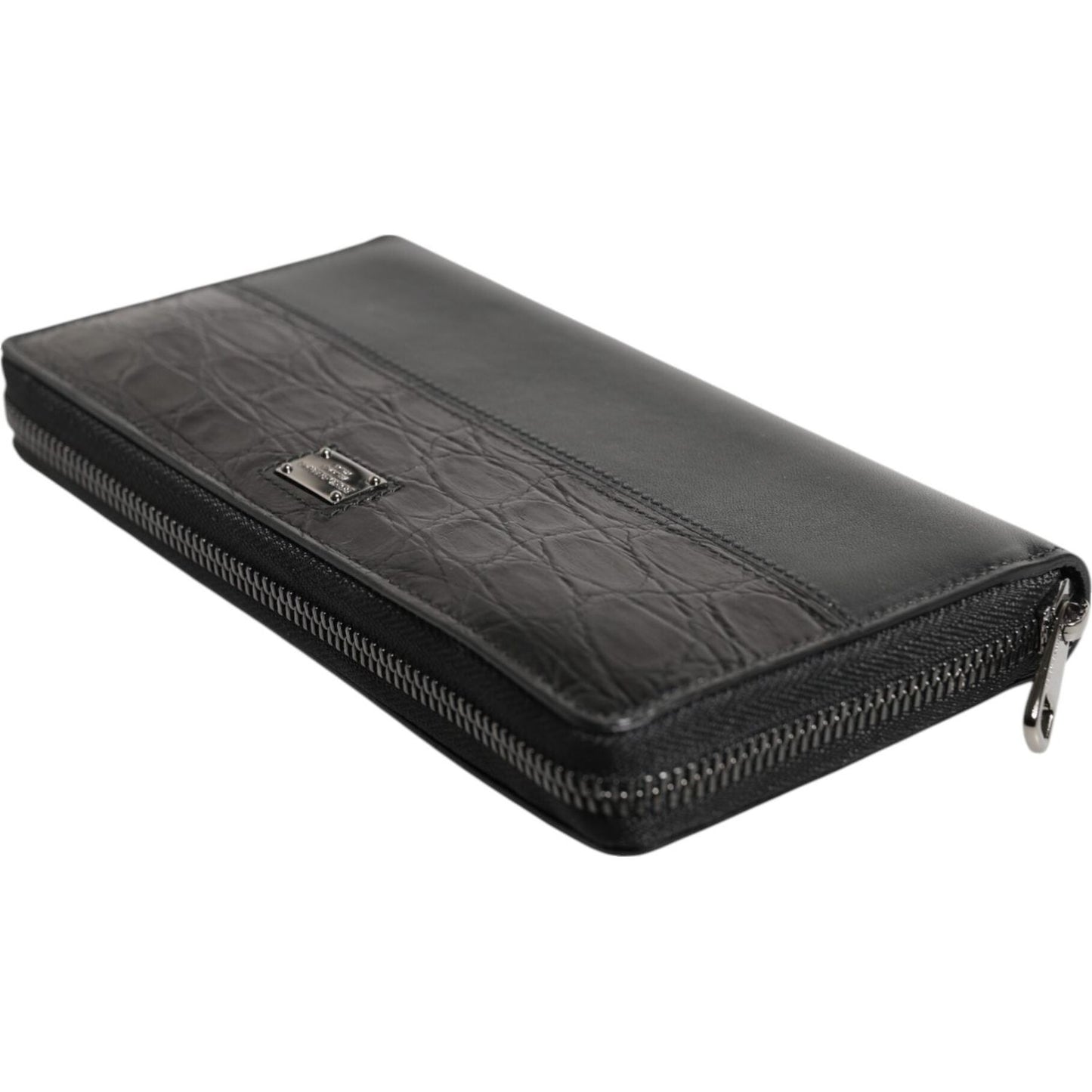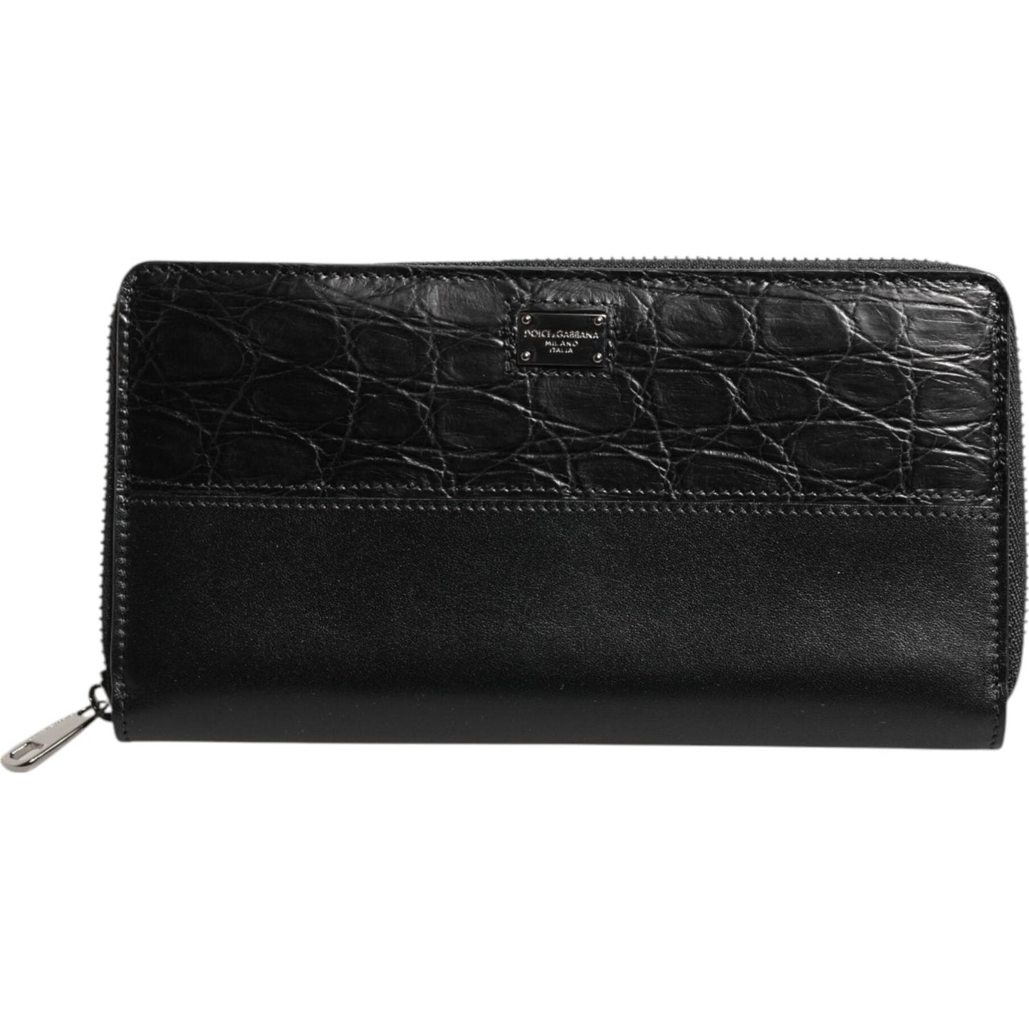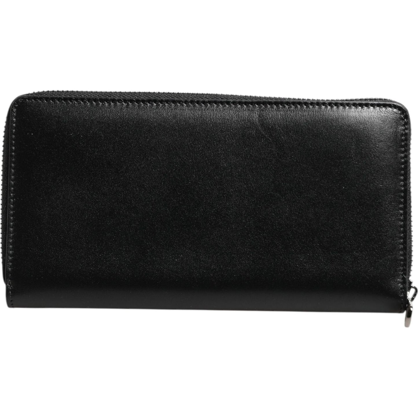 Dolce & Gabbana Black Leather DG Plaque Zip Around Continental Wallet