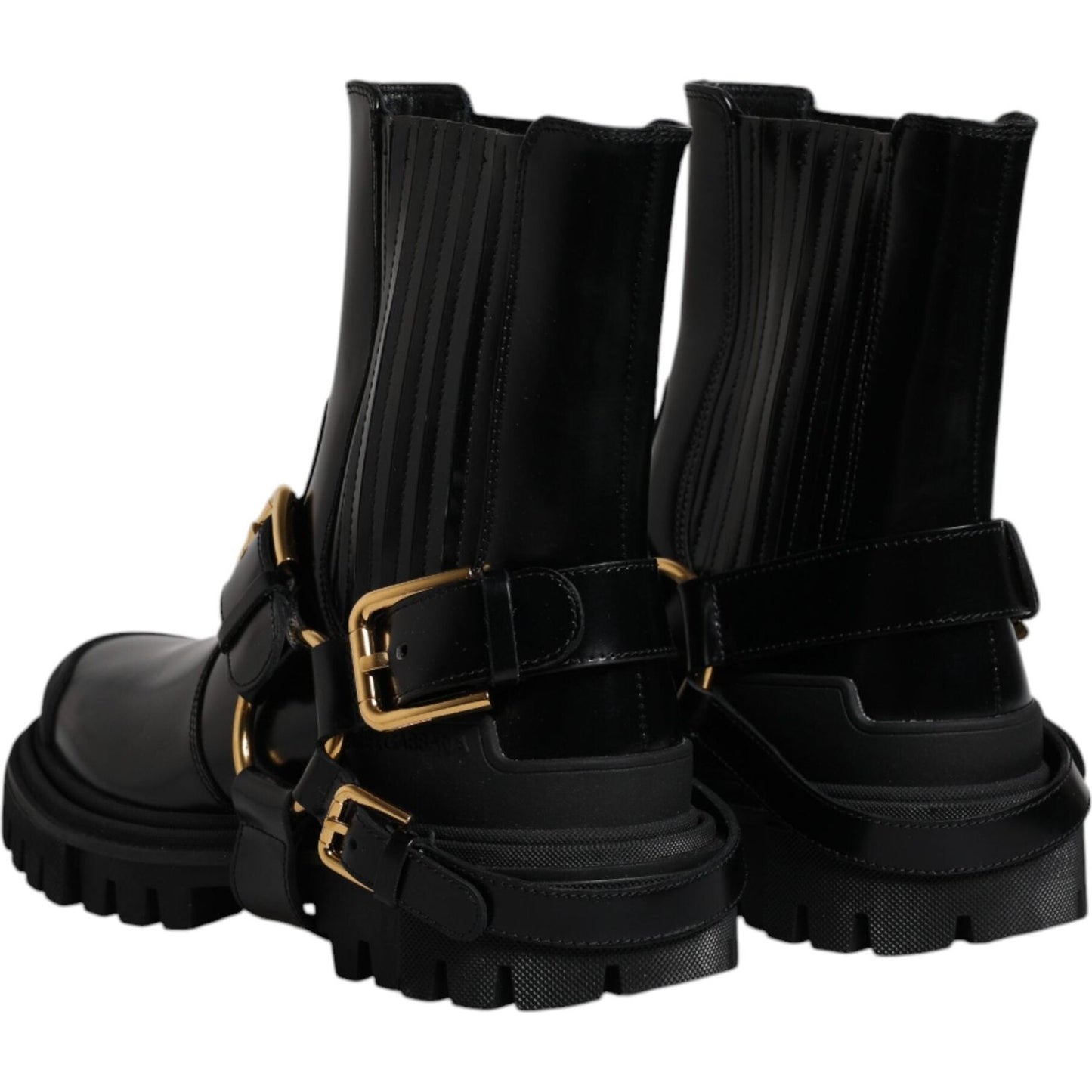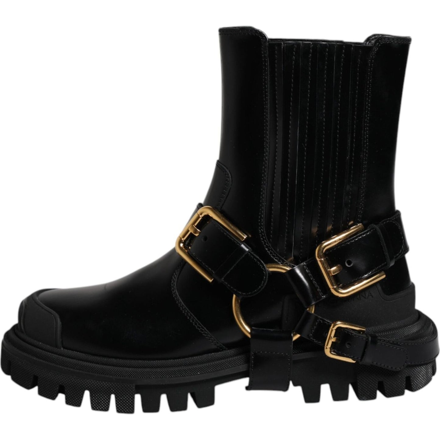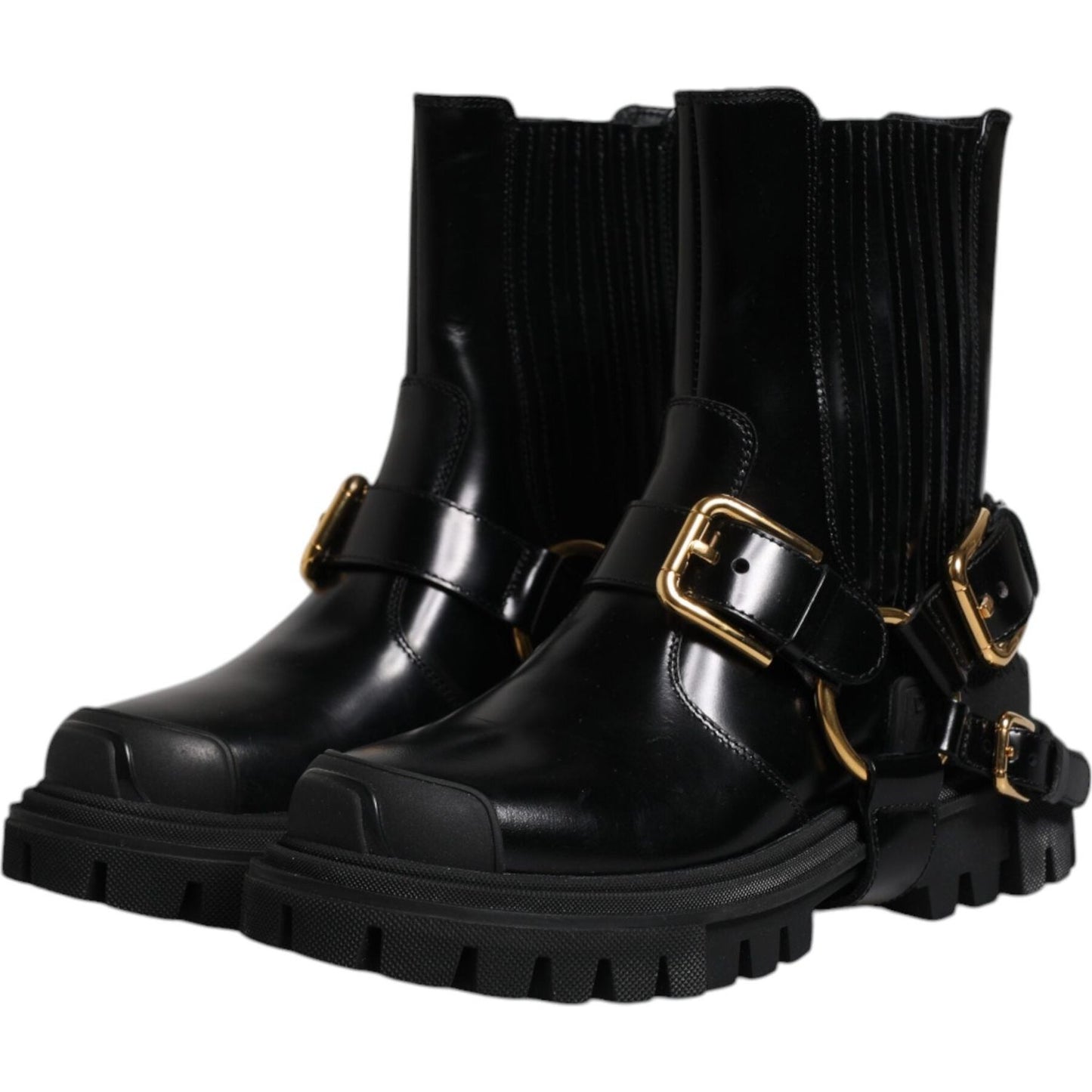 Dolce & Gabbana Black Leather Slip On Stretch Trekking Boots Shoes