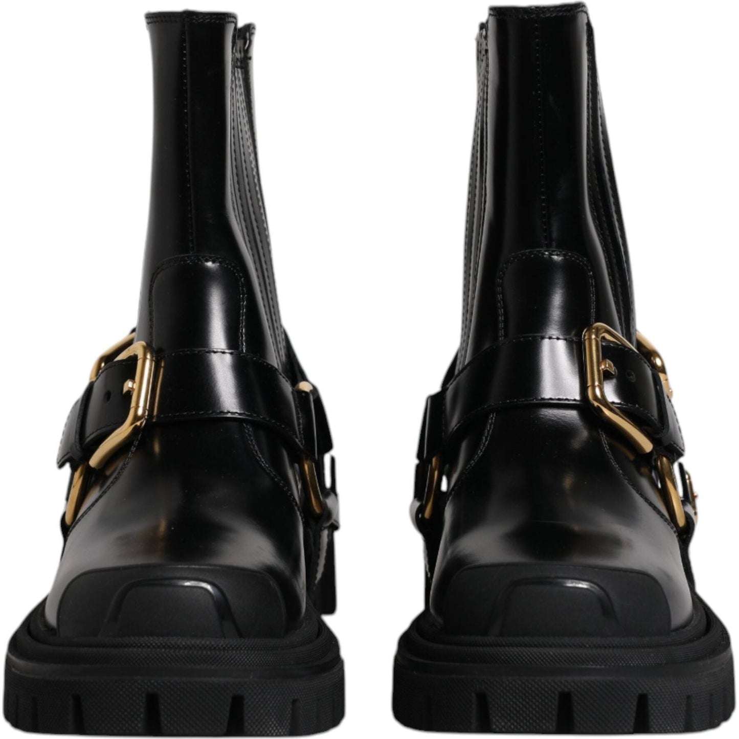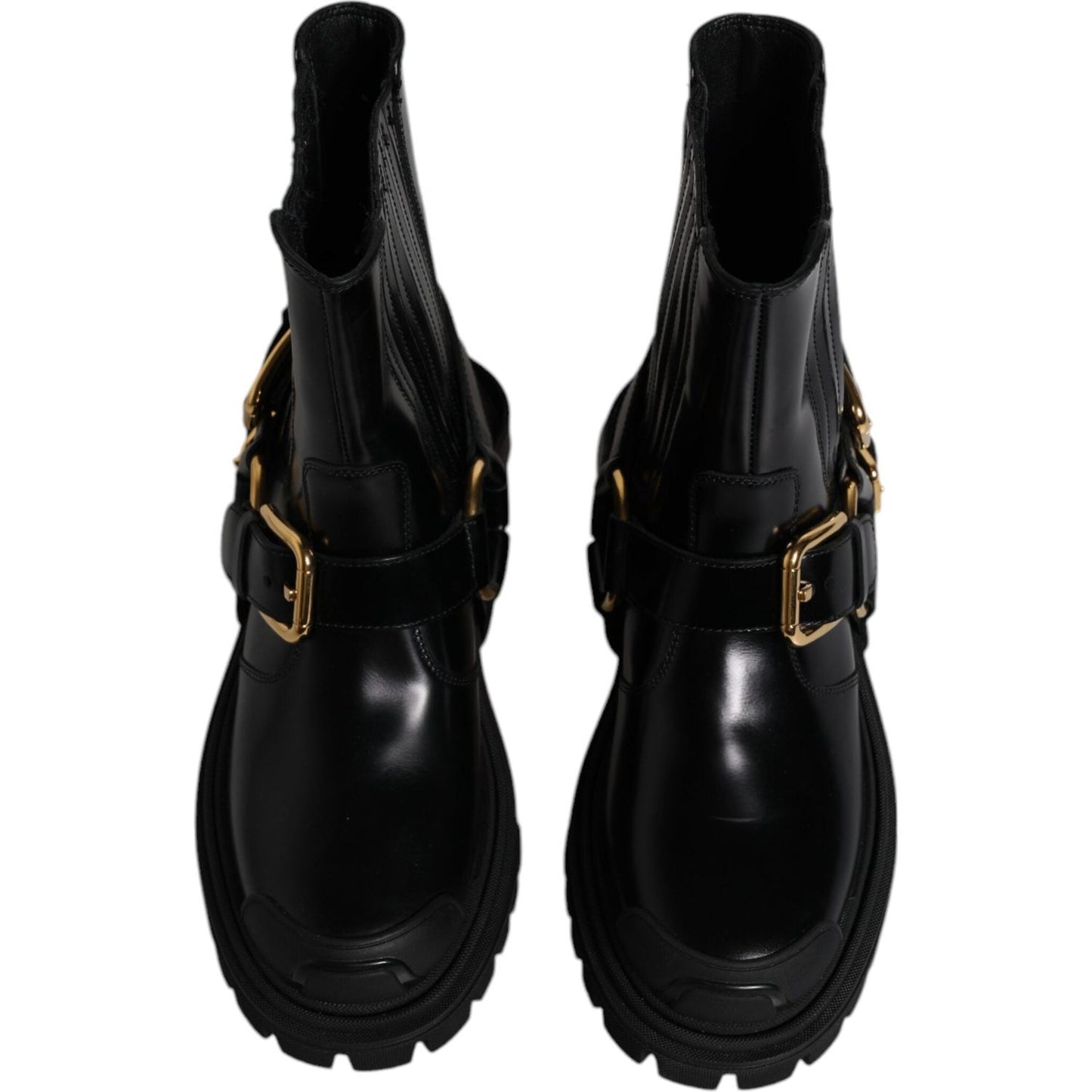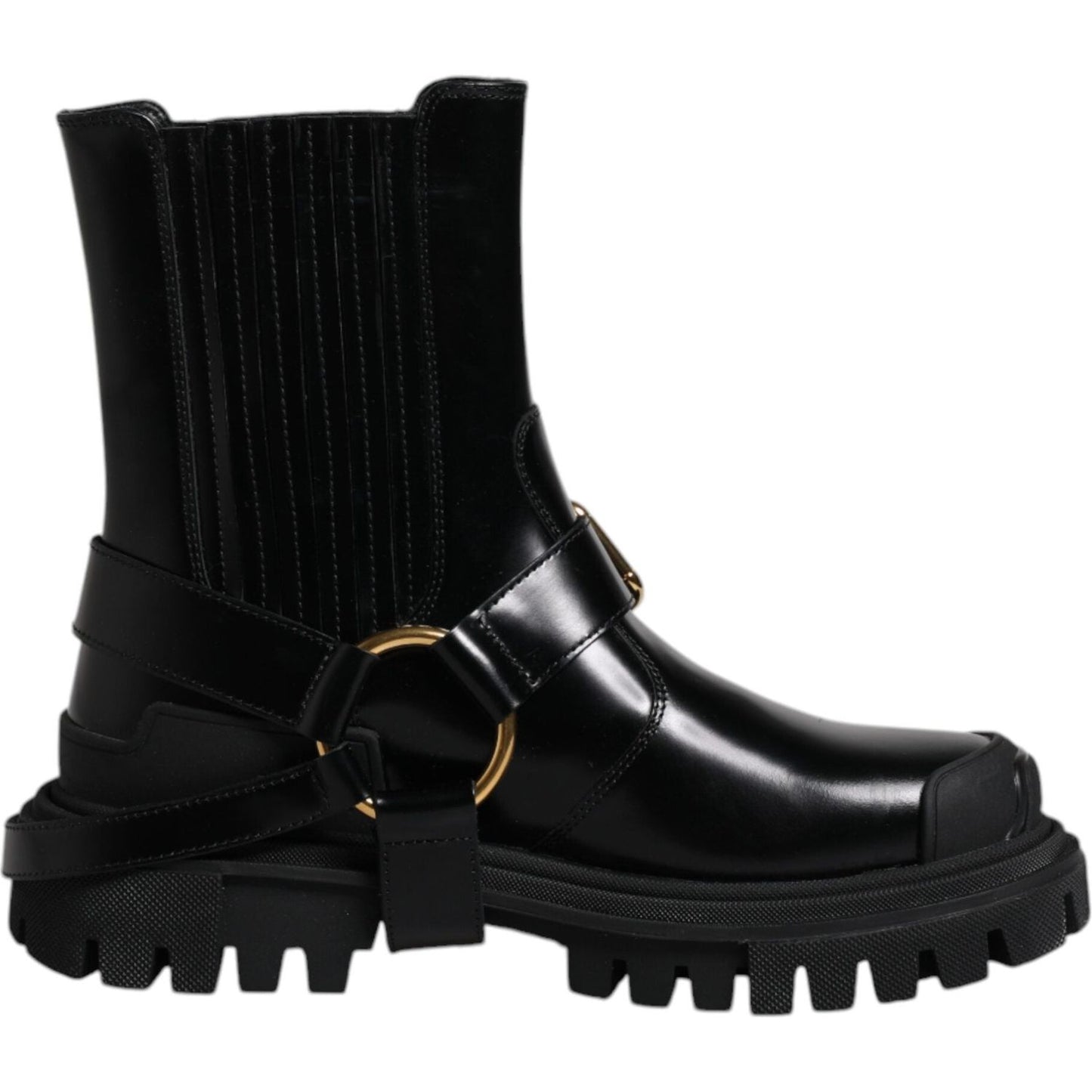 Dolce & Gabbana Black Leather Slip On Stretch Trekking Boots Shoes