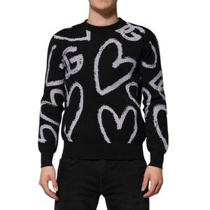 Dolce & Gabbana Black Nylon Wool Heart Print Pullover Sweater