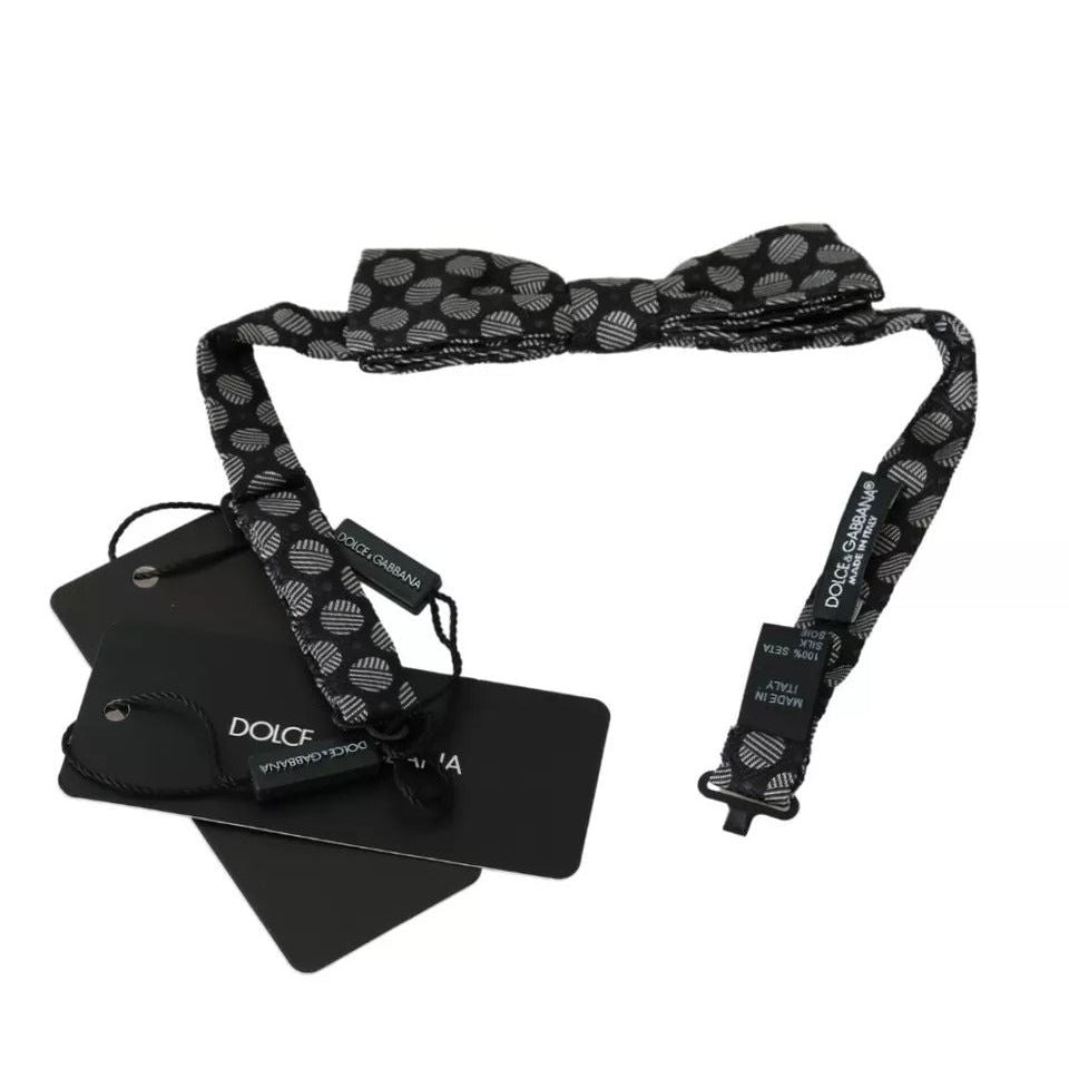 Dolce & Gabbana Black Silk Circles Men Necktie Bow Tie