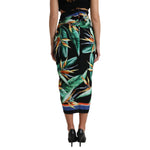 Dolce & Gabbana Black Strelitzia High Waist Wrap Midi Skirt