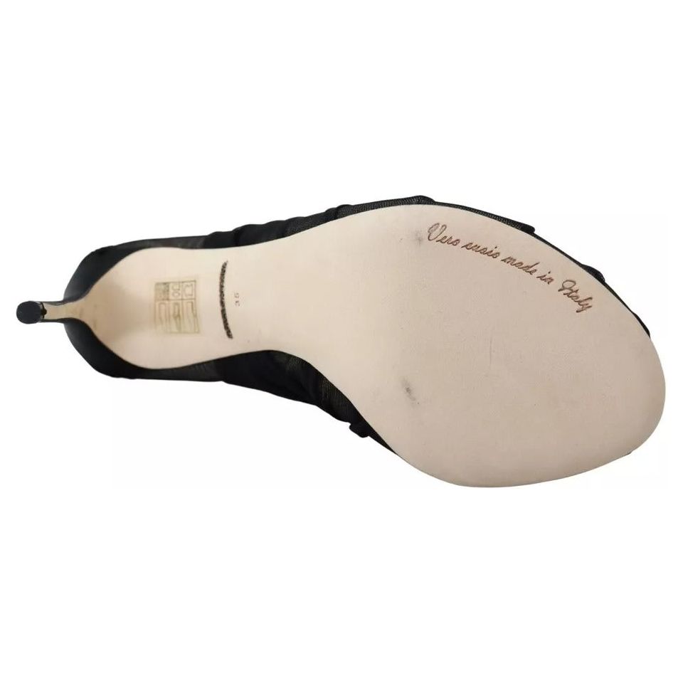 Dolce & Gabbana Black Tulle Ankle Boots Stiletto Heels Shoes