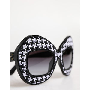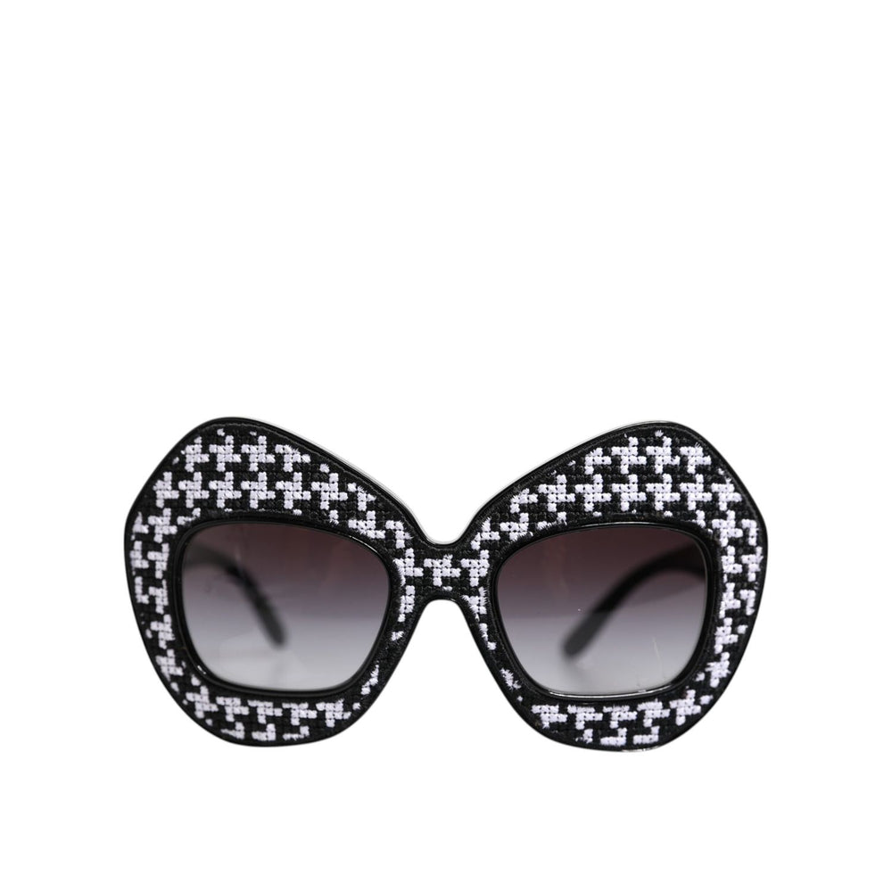 Gorgeous brand new, 100% Authentic Dolce & Gabbana sunglasses crafted from acetate frame front and black and white pied-de-poule woven fabric applications.