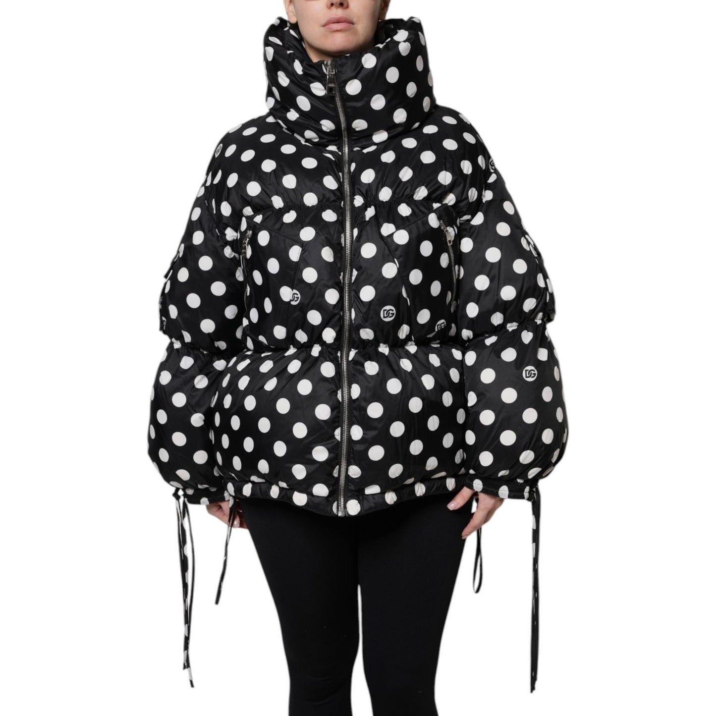 Dolce & Gabbana Black White Polka Dot Full Zip Puffer Jacket