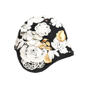 Dolce & Gabbana Black Wool White Floral Gold Leaf Cloche Hat