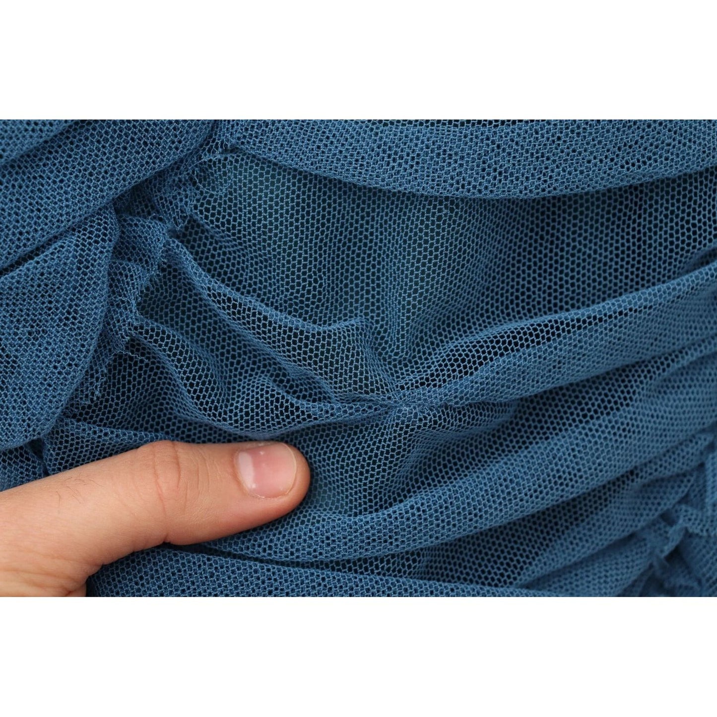 Dolce & Gabbana Blue Mesh Trim Ruched Tulle Sheath Dress